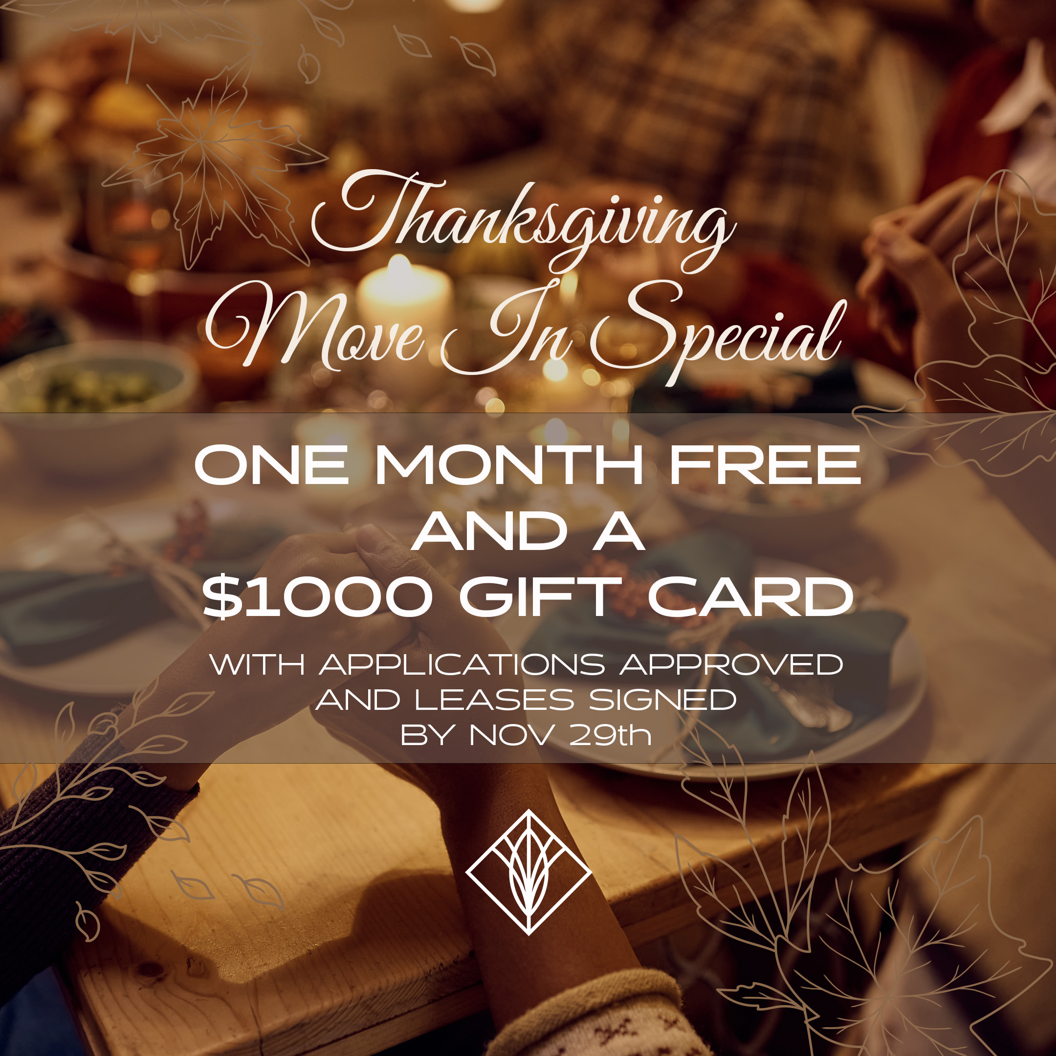 - One month's rent is due upon approval to hold the apartment